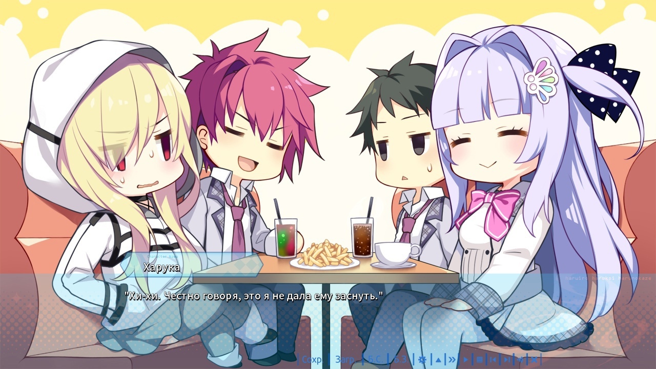 Тэги: кярагэОт 'character' и 'game'. Вид визуальных новелл, в которых акцент делается на взаимоотношениях персонажей. Часто пересекается с моэгэ., моэгэМоэгэ (萌えゲー, moege) – визуальные новеллы или эрогэ с большим содержанием моэ-контента. Для игр данного жанра характерны простые и 'лёгкие' сюжеты, приятное визуальное и звуковое сопровождение, а также большое наличие стереотипных персонажей., чунигэЧунигэ (от '中二病' ('синдром восьмиклассника') и 'ゲーム' ('игра')) – подвид визуальных новелл, в которых одними из основополагающих образующих сюжета являются пафосные бои, геройская тематика, превозмогания, магия и суперспособности., линейный сюжетИгра содержит целиком линейный сюжет, и привычные для визуальных новелл руты (сюжетные арки) отсутствуют. Это не значит, что в новелле вообще не может быть выборов, но, если есть, они не оказывают большого воздействия на сюжет., эроге (18+)Эроге (エロゲ, от англ. 'Erotic game') – японская порнографическая игра. От обычной визуальной новеллы отличается наличием в ней порнографических материалов, не предназначенных для несовершеннолетних., ADVADV – вид визуальных новелл, в котором текстовая часть располагается в небольшом окошке в нижней части экрана. Самый распространённый вид визуальных новелл.