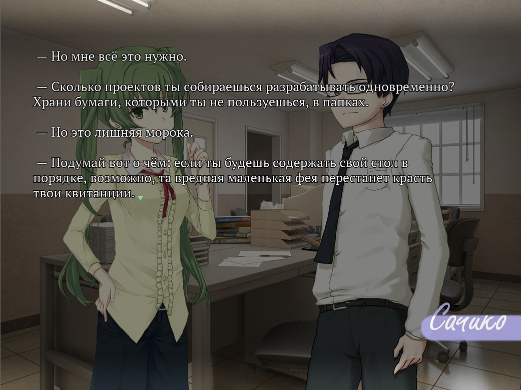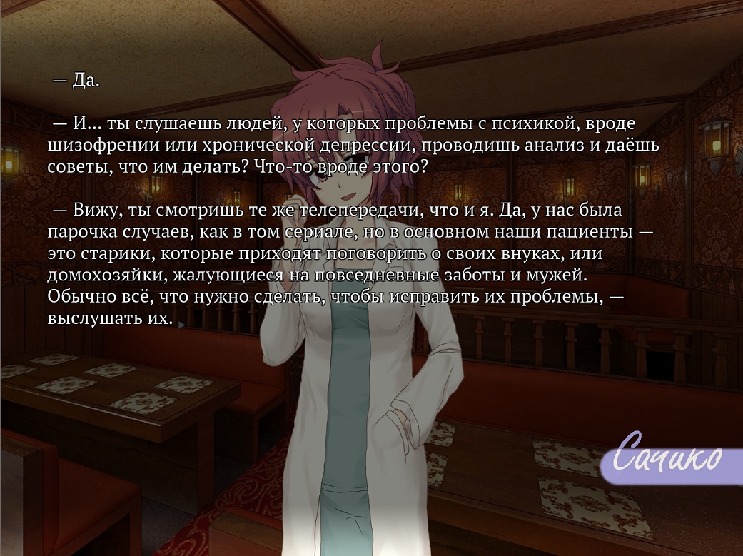 Тэги: сторигэСторигэ (от англ. 'story' – 'история' и ゲ, сокр. от 'ゲーム' – 'игра') – подвид визуальных новелл, в которых основной упор делается на сюжет., для всех возрастов (all), NVLОбозначение для новелл, в которых текстовая панель занимает большую часть экрана.