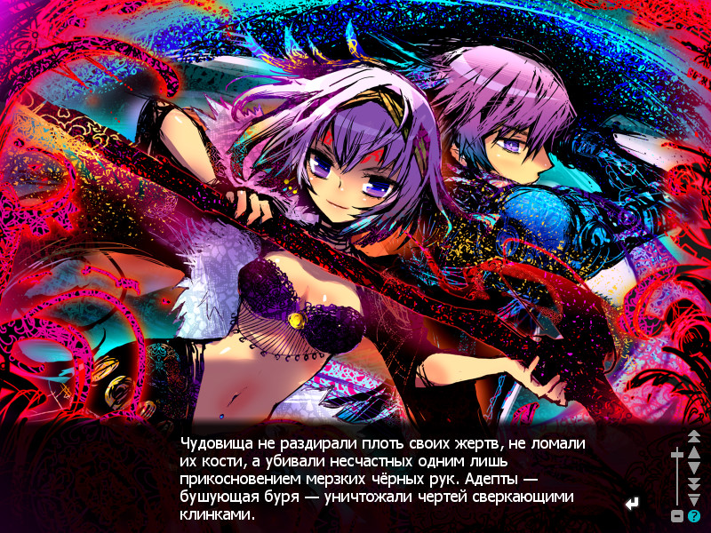 Тэги: стимпанк, линейный сюжетИгра содержит целиком линейный сюжет, и привычные для визуальных новелл руты (сюжетные арки) отсутствуют. Это не значит, что в новелле вообще не может быть выборов, но, если есть, они не оказывают большого воздействия на сюжет., эроге (18+)Эроге (エロゲ, от англ. 'Erotic game') – японская порнографическая игра. От обычной визуальной новеллы отличается наличием в ней порнографических материалов, не предназначенных для несовершеннолетних., ADVADV – вид визуальных новелл, в котором текстовая часть располагается в небольшом окошке в нижней части экрана. Самый распространённый вид визуальных новелл.