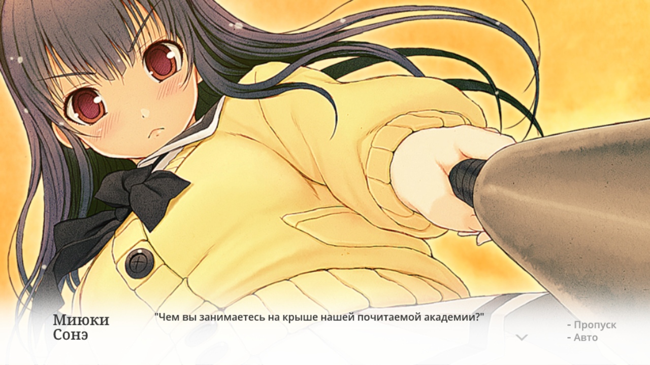 Тэги: эроге (18+)Эроге (エロゲ, от англ. 'Erotic game') – японская порнографическая игра. От обычной визуальной новеллы отличается наличием в ней порнографических материалов, не предназначенных для несовершеннолетних., ADVADV – вид визуальных новелл, в котором текстовая часть располагается в небольшом окошке в нижней части экрана. Самый распространённый вид визуальных новелл., дэнпаВ таких новеллах герои, которые до поры вели себя нормально, вдруг начинают вести себя неестественным образом, словно на них напало помешательство. Главный герой не всегда является исключением.